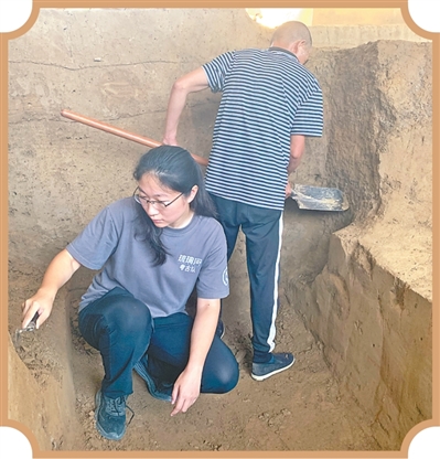 王晶(左)在琉璃河遺址城北發掘區工作。本報記者??施??芳攝