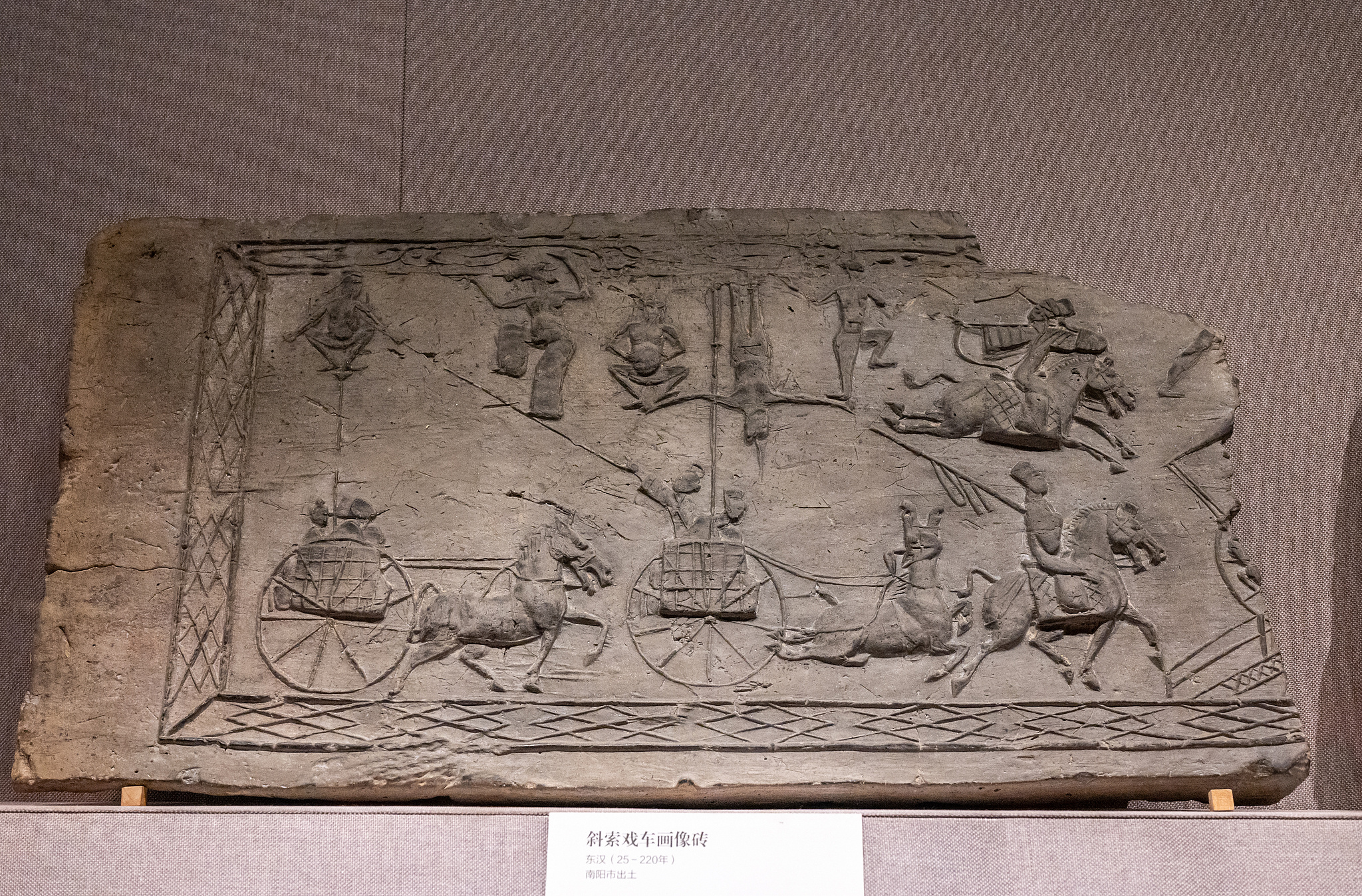 △漢代平索戲車車騎出行畫像磚中國國家博物館藏