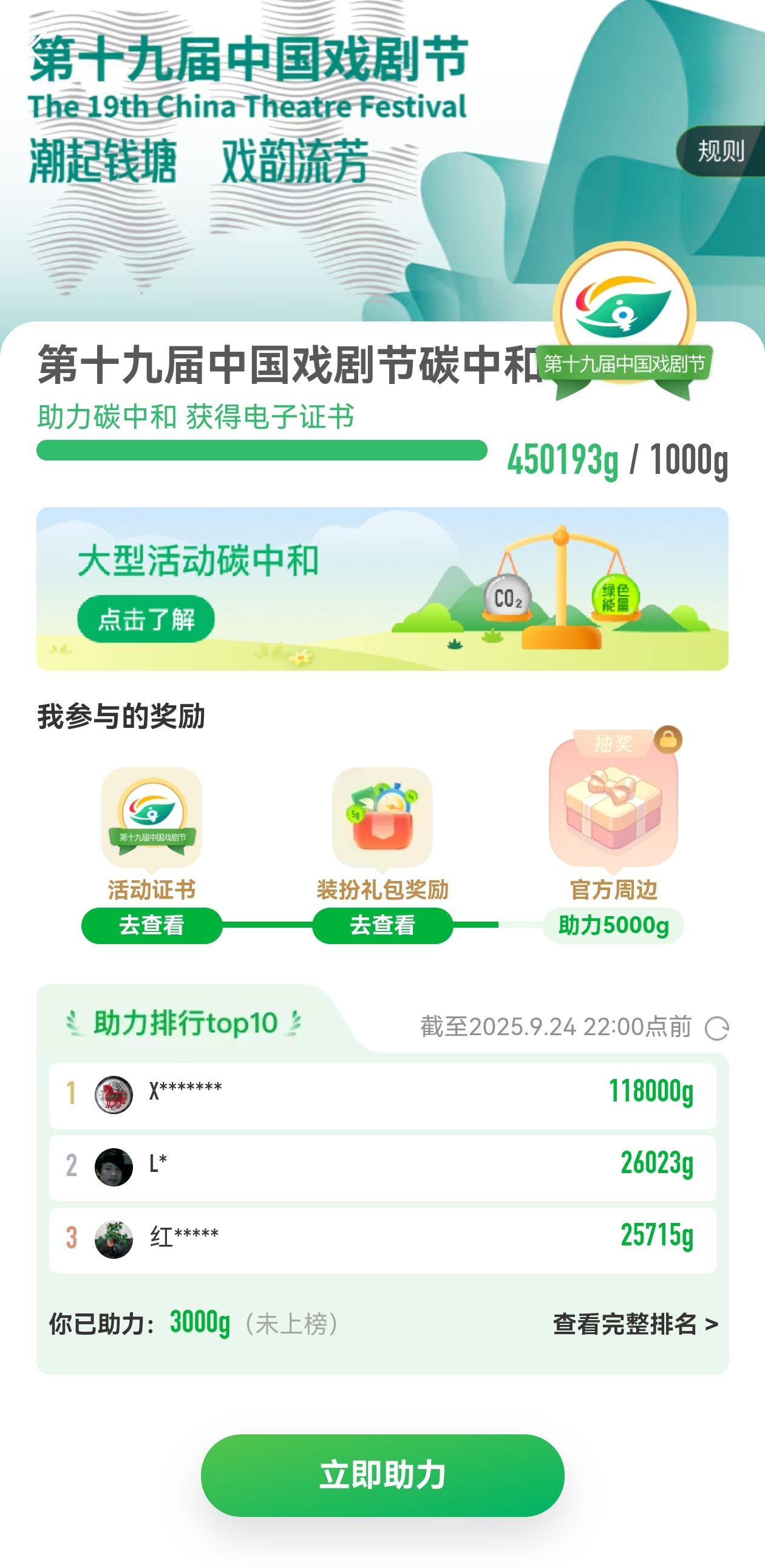 作為我國戲劇領域的重要品牌活動,第十九屆中國戲劇節的綠色實踐備受關注。為此,中國戲劇家協會、中國外文局文化傳播中心、螞蟻森林嚴格遵循《大型活動碳中和實施指南(試行)》要求,創新將文化藝術傳播與生態環境保護深度融合——依托數字化平臺技術優勢,希望通過搭建公眾廣泛參與的低碳互動場景,既能有效激發了社會各界的參與熱情,也為實現戲劇節全流程碳中和提供了有力支撐,努力打造出文化活動綠色發展的示范樣本。