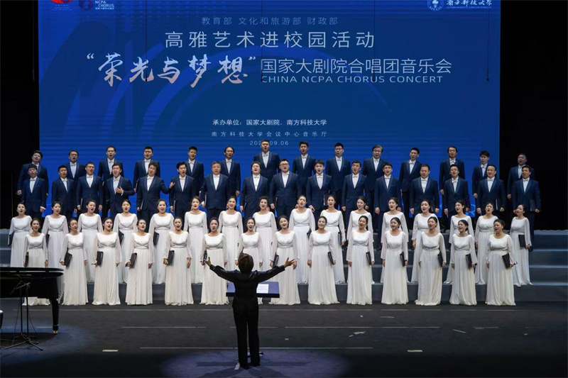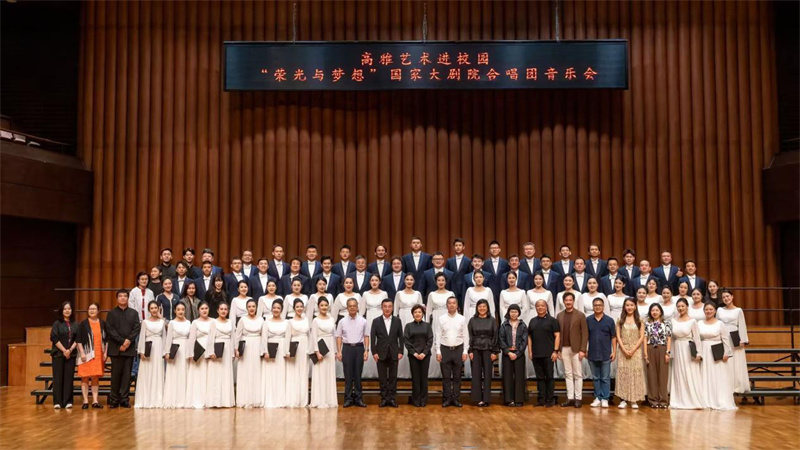 此次活動由教育部、文化和旅游部、財政部主辦,國家大劇院承辦。在中國人民抗日戰爭暨世界反法西斯戰爭勝利80周年紀念活動隆重舉行之際,國家大劇院合唱團先后走進南方科技大學、星海音樂學院,為師生呈現了兩場高水平音樂會和一場深度藝術教育活動,在旋律中感受愛國主義的力量與深情,在新學期“開學第一課”中,開啟追求卓越、奮發向上的新征程。