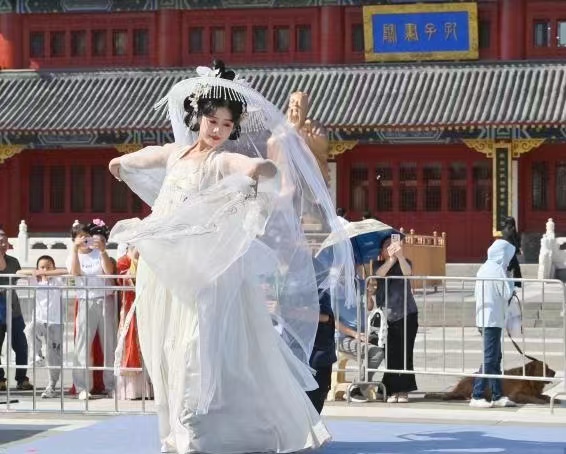 東北賽區經過層層選拔,39名優秀選手進行最終的較量。比賽過程中,選手們身著各式精美漢服,依次登臺亮相。通過專業的 T臺走秀、優美的舞臺表現以及生動的情景演繹,為大家展示了傳統文化的無窮魅力。在才藝展示環節,選手們更是各顯神通。有人演奏傳統樂器,悠揚的樂聲仿佛將觀眾帶入了古代的繁華市井;有人表演古典舞蹈,輕盈的舞姿配合飄逸的漢服,盡顯東方的柔美與典雅。臺下觀眾熱情高漲,無論是漢服同袍還是普通市民,都被這場精彩的賽事所吸引,現場不時爆發出熱烈的掌聲和歡呼聲。