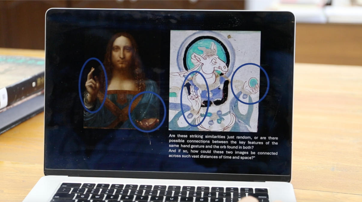 最近,我在莫高窟第25窟中發現一個熟悉的畫面,其壁畫中的人物手勢造型,與目前世界上最昂貴的畫作、達·芬奇名作《救世主》中的手勢幾乎如出一轍,但前者大概創作于公元950年,比后者面世早了500多年。