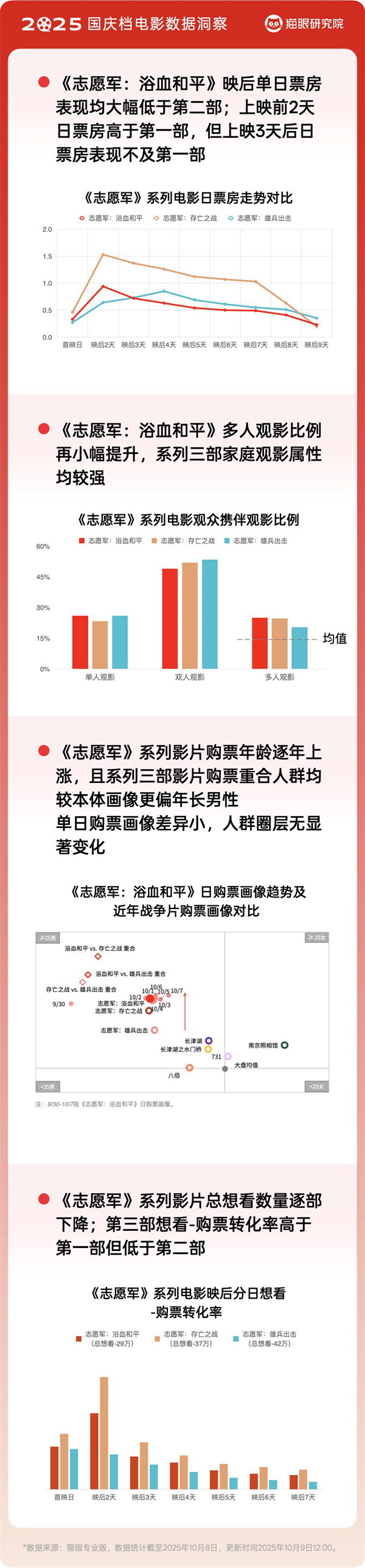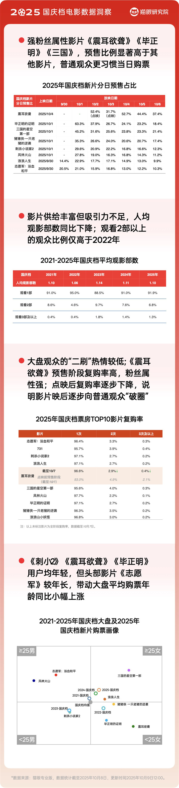 整體上看,盡管今年國慶檔表現稍顯乏力,新片映前熱度及映后口碑均一般,但市場在影片供給、票價策略和分眾滿足方面仍體現出一定的適應性與多樣性,也側面反映了觀眾對于高質量“爆款”作品的迫切需求。