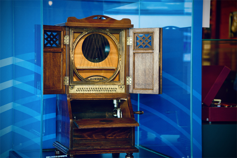 展廳中呈現有愛迪生早期“琥珀”蠟筒與“鉆石”唱片、“聽主人的聲音”金扇面留聲機、德國KLINGSOR弦共振留聲機、新中國首版《黃河大合唱》密紋唱片與紅唱片《墾春泥》、Webster Chicago鋼絲錄音機等重要展品,同時搭配“聆聽北京的聲音”“未來音樂星河”等交互體驗區與留聲機復原場景打卡區,以多元的視聽內容和感官體驗,為觀眾帶來趣味性的聲音科普,感受聲音科技與藝術發展的魅力。