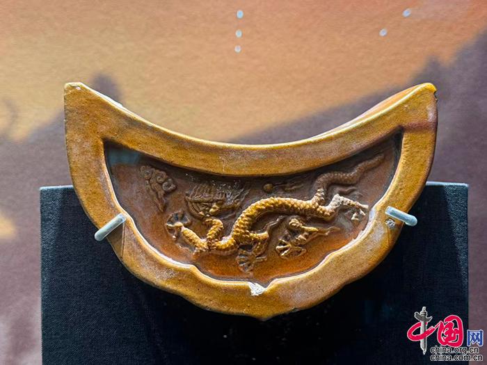 黃琉璃龍紋聯辦滴水殘件 明早期 故宮造辦處遺址出土 攝影 中國網記者 蘇向東