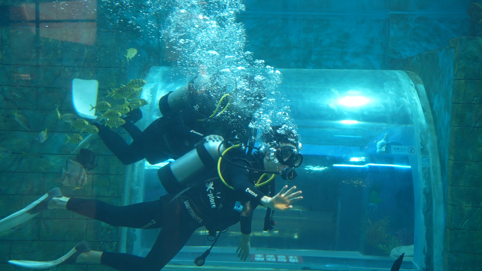 記者體驗潛水運動(央廣網記者 韓雨晨 攝)