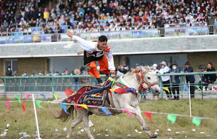 8月6日至8日,四川甘孜山地文化旅游節系列活動之一的色達金馬文化節在四川省色達縣扎青塘草原舉辦。當地群眾身著節日盛裝載歌載舞、歡聚一堂,文藝表演、賽馬、傳統服飾展演、非遺展示等活動精彩紛呈。