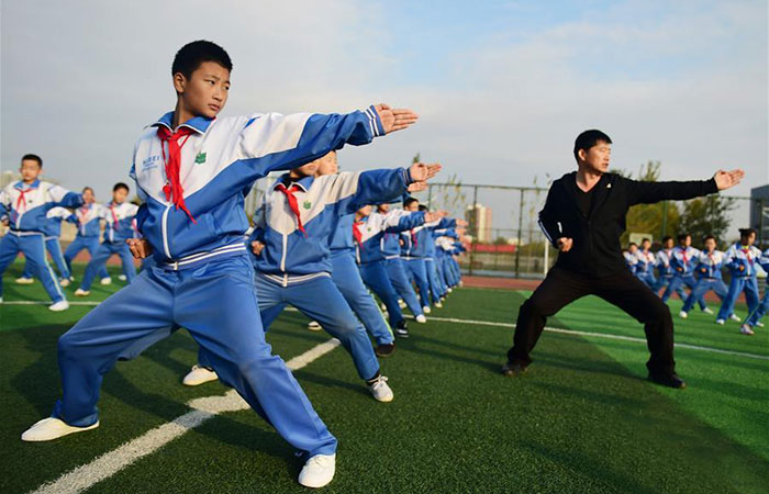 近年來,“武術之鄉”河北省滄州市對體育教師進行強化培訓和技術指導,編制武術教材,持續推進傳統武術進校園活動。