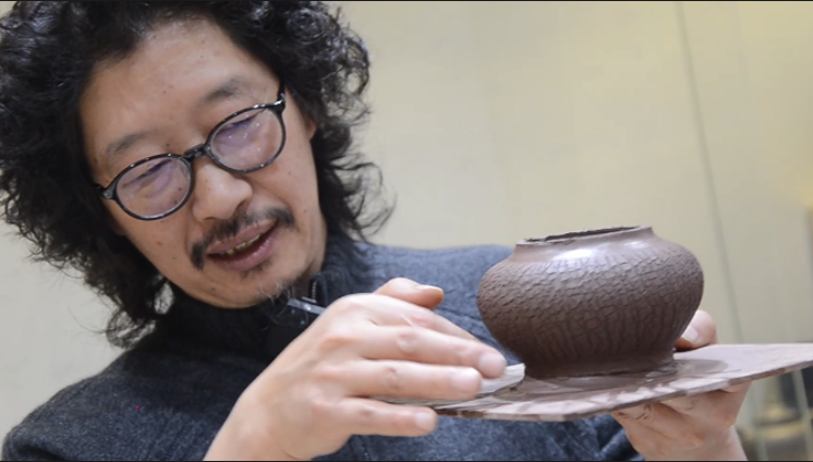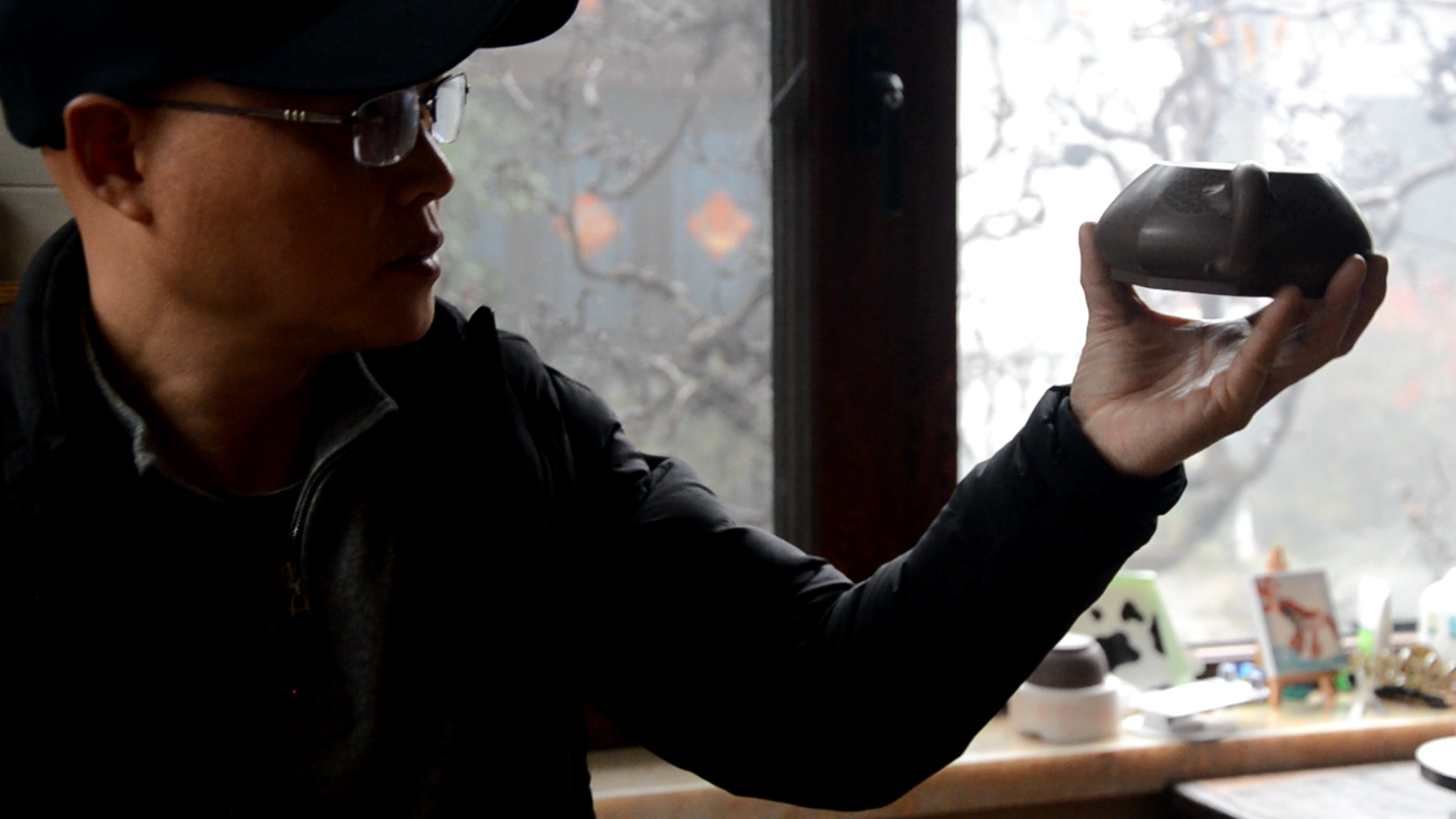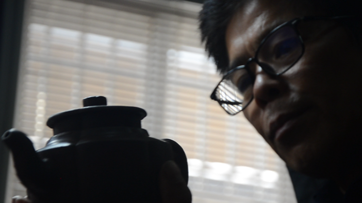 紫砂手藝人范洪明:“為什么壺這么神奇?為什么有些人壺做的好,有些人做的差?因為做紫砂壺他是靠眼光、靠感覺,他沒公式,直到這把壺做好,這個就是紫砂的精髓?!?